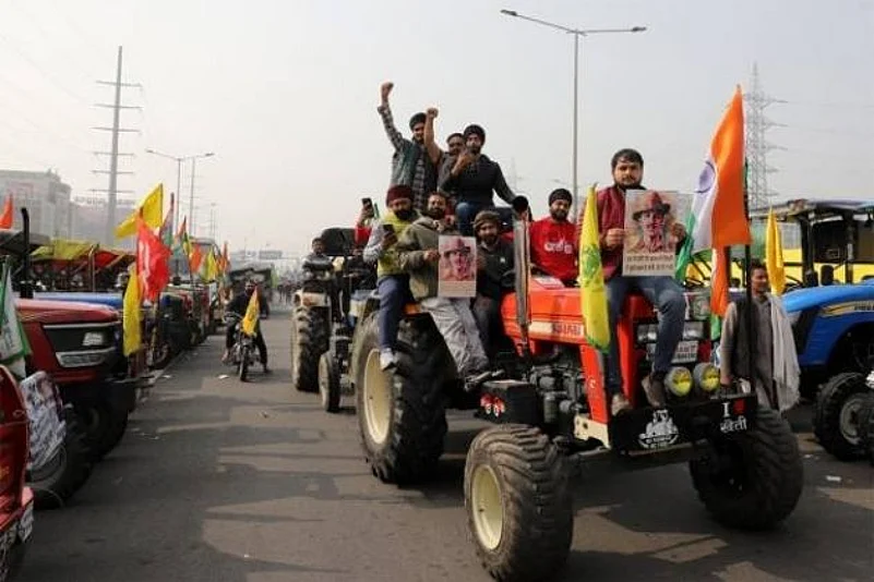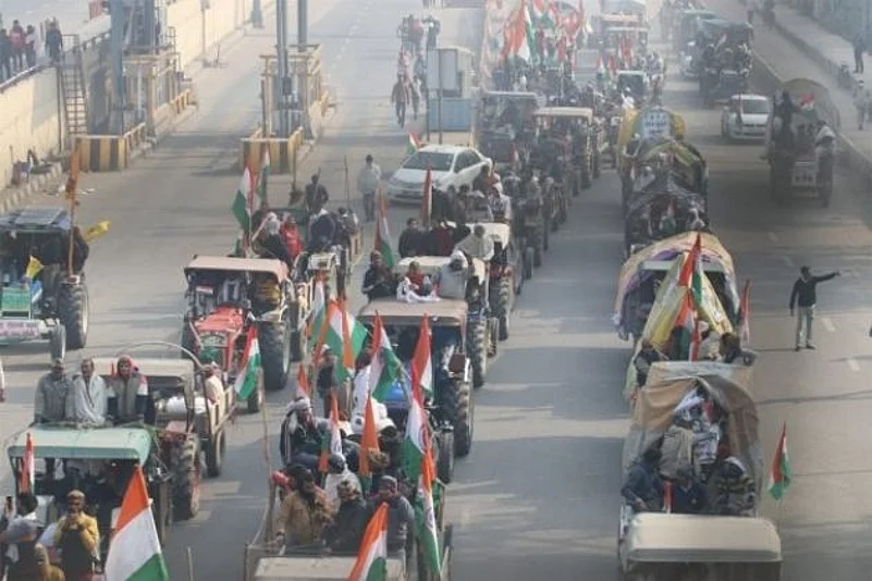 Farmers participate in the Kisan Gantantra Parade as part of their protest against Centres farm reform laws, on the occasion of 72nd Republic Day, near Akshardham in New Delhi.