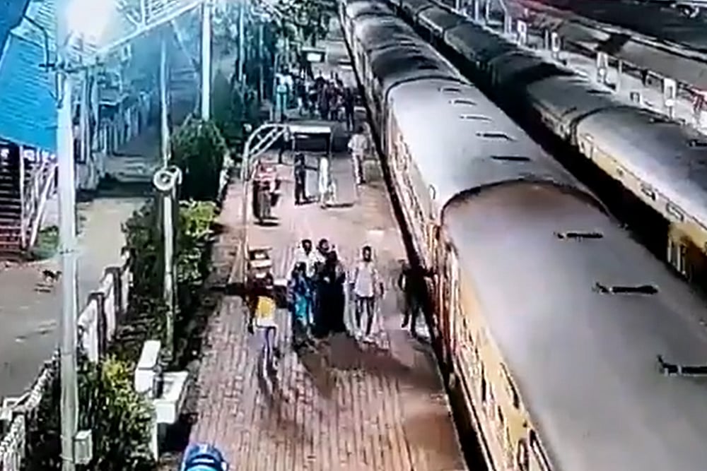 The video was captured at the Vasco station wherein a man is seen trying to board a moving train but accidentally ends up being caught in the gap between the train and the platform. An RPF personnel is then seen running into the scene and saving the man from getting hurt.