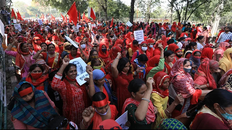 “Jab mahilaon ko ghar ke kaam chhodkar sadkon pe aandolan karne nikalna padta hai, toh ye koi maamuli baat nahi hoti,” said Rajni, an Anganwadi worker, to Outlook in a previous interview. (When women leave their household chores to protest on the street, it’s not a petty issue.)