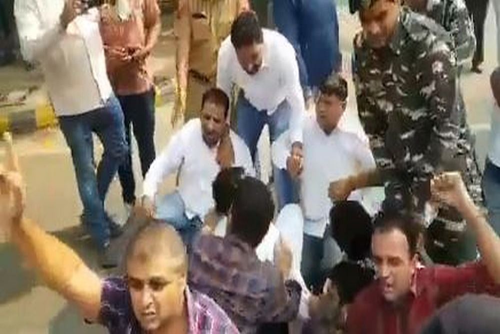 The protesters wore masks and shouted slogans against the BJP-led government.