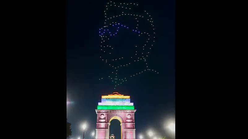 A swarm of drones lit up the night sky over India Gate on Friday, showcasing the life and legacy of freedom fighter Subhas Chandra Bose and celebrating his newly unveiled statue.