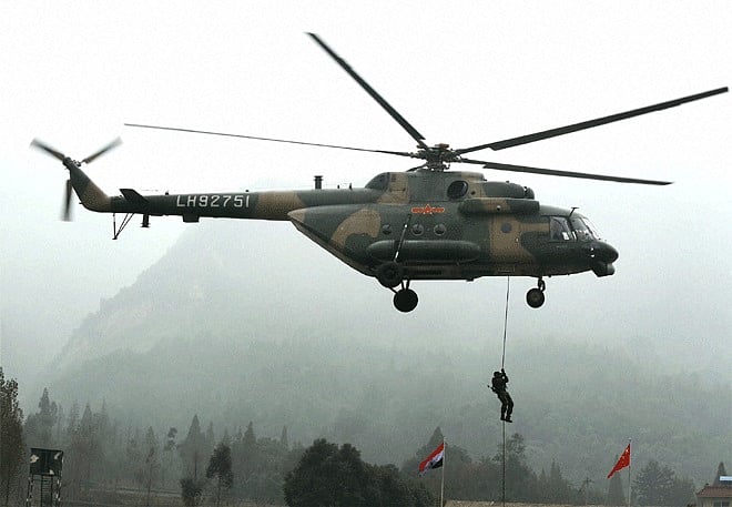 Slithering is an exercise where troops are dropped from a helicopter in an area of operation using a rope attached to the chopper.