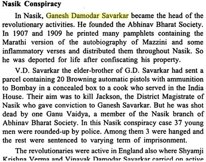 The ‘Abhinav Bharat Society’ was an organization founded by Savarkar’s brother in 1903. Here is what N. Jayapalan had to say about it in History of India.