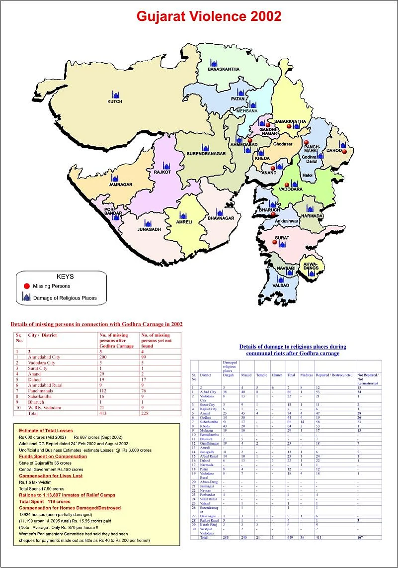 As bad or worse were the provocations and hate speeches that were cynically allowed and encouraged by Mr. Modi and his administration. PCR messages of Ahmedabad and SIB messages from all over the state are testimony to this incendiary mobilisation.