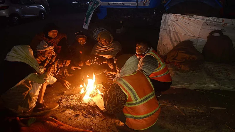 Farmers and security personnel spend days and nights huddled in the cold of north India