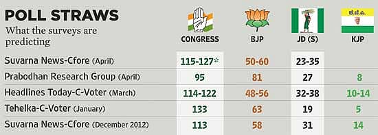 So, which one of them will be the king or kingmaker—that’s the hottest debate among political campaigners and analysts. The discussion revolves around who would align with whom in the event of the Congress falling short of a majority. Will Kumaraswamy defy his father yet again, like in 2006, and join hands with the BJP just to avoid being a junior partner to the Congress? Or will the Congress prefer a junior partner like the KJP as it would then be able to play Yediyurappa in the way the UPA is playing Mulayam Singh Yadav, using cases and inquiries as weapons? Against the backdrop of this debate, parties have gone for door-to-door campaigning, in which they hope to gain much over the next week. D-Day is May 5.