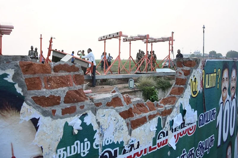 On hearing about the incident Tamil Nadu Tourism Minister N. Natarajan visited the airport and inspected the damage.