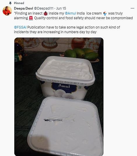 On June 15, taking it to the social media platform, Deepa Devi had shared a picture purportedly showing a centipede inside her Amul ice cream tub that she ordered through an instant delivery app.