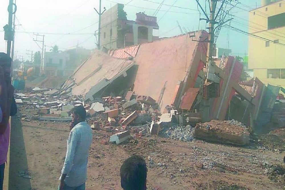 The local people denounced the contractors assigned by the Guntur Municipal Corporation for digging the drains close to the building. They also added that tenants had complained that building was shaking and expressed their fear.