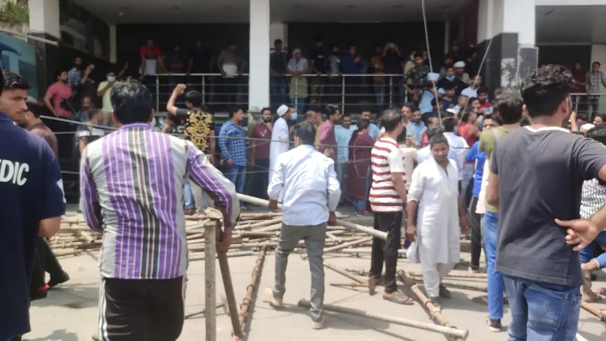 Protests erupted in Shaheen Bagh ahead of an anti-encroachment drive on Monday as hundreds of people including women started dharna in the area as soon as the SDMC officials reached the spot with bulldozers to carry out the exercise. According to reports, demolition has been halted after locals took down illegal structures themselves including a shed. MCD officials present at the site confirmed to Outlook that the demolition had been halted temporarily.