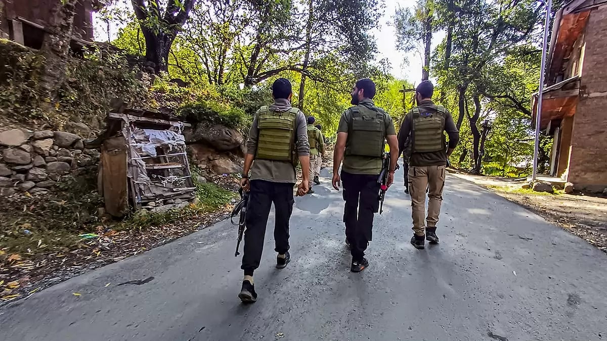 Two bodies were found in the forest area. One of the deceased was identified as Pradeep, the soldier killed by the terrorists on Wednesday, sources said. The identity of the other deceased is being ascertained.