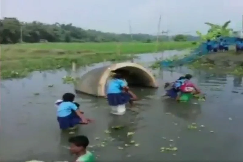 Swimming across the river to reach the school has become a routine affair for the children of Dalgaon district of Assam.