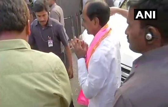 4:15 pm: K Chandrsekhar Rao arrives at party headquarters in Hyderabad, he won from Gajwel constituency by over 50,000 votes. TRS is leading on 87 seats in the state.