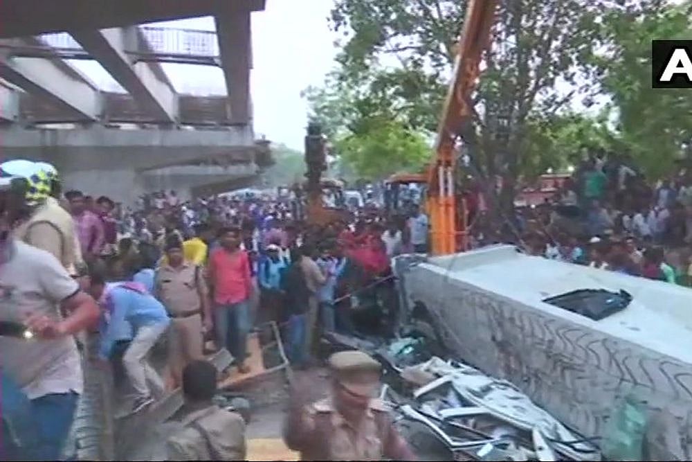 At least 12 people were killed when a portion of an under construction flyover near the railway station in Varanasi's Cantt. area collapsed today and several people were feared trapped under the debris.
