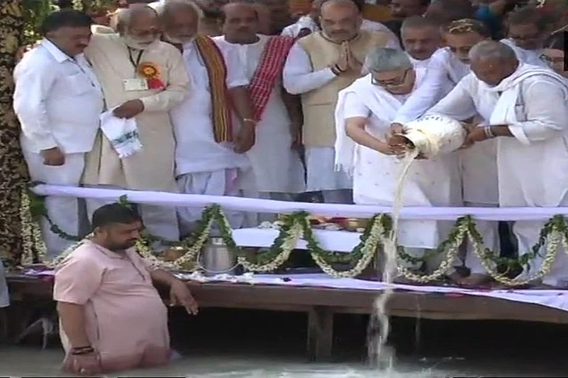 Top party leaders including BJP president Amit Shah, Home Minister Rajnath Singh, UP Chief Minister Yogi Adityanath, his Uttarakhand counterpart Trivendra Singh Rawat, his adopted daughter Namita Kaul Bhattacharya and other family members of Vajpayee were present as the urn carrying his ashes was emptied into the river amid chanting of vedic hymns.