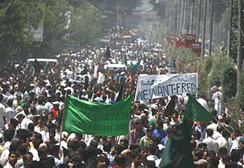 On August 16, more than 3,00,000 people marched to Pampore, to the village of Hurriyat leader Sheikh Abdul Aziz, who was shot down in cold blood five days earlier. He was part of a massive march to the Line of Control demanding that since the Jammu road had been blocked, it was only logical that the Srinagar-Muzaffarabad highway be opened for goods and people, the way it used to be before Kashmir was partitioned.