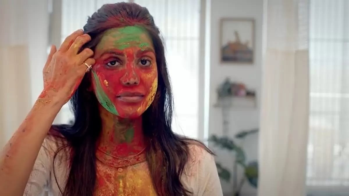 The advertisement shows a woman washing off the different colours from her face and once the colours start to fade, there appear bruises on her skin.
