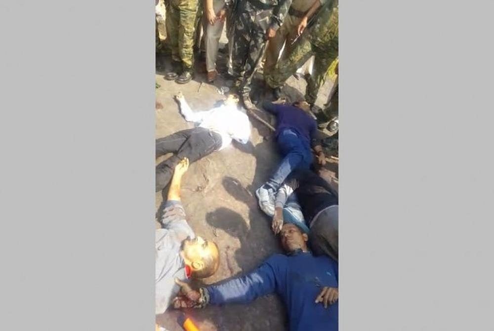 The next day TV channels aired unverified videos which had one showing the men trying to talk to the police and another where a police official is seen shooting at a man who is already lying down on the ground.