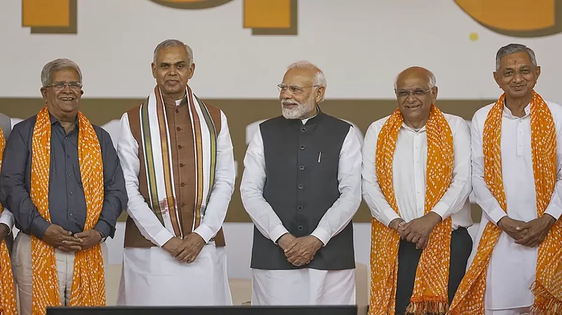 Bharatiya Janata Party (BJP) leader Bhupendra Patel on Monday took oath as the 18th Chief Minister of Gujarat. Besides Patel, 16 Cabinet members were also sworn in. Top BJP leaders such as Prime Minister Narendra Modi, Union ministers Rajnath Singh and Amit Shah, Uttar Pradesh CM Yogi Adityanath and Madhya Pradesh CM Shivraj Singh Chouhan attended the swearing-in ceremony. This will be BJP's seventh consecutive term in Gujarat.