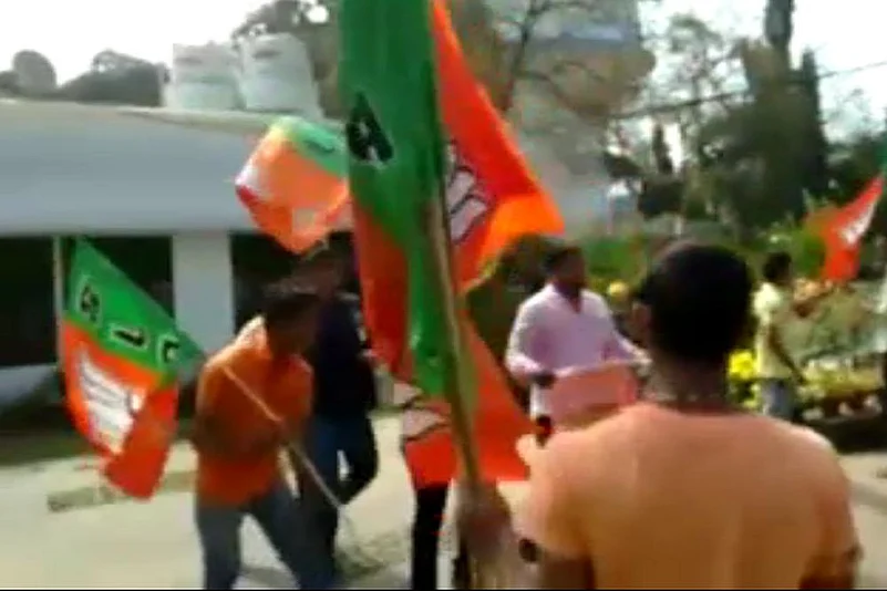 A staff at the residence claimed that the attackers, who described themselves as BJP activists and carried party flags and placards, also assaulted him besides damaging the flower pots and some vehicles parked inside the compound.