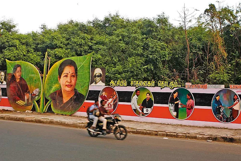 The EC is also unable to counter the impact of one of Jayalalitha’s most visible welfare schemes—the eponymously named ‘Amma Unavagam’ or Amma canteens. This is an impressive project that offers subsidised, good quality food—Rs 1 idlis, Rs 3 for sambhar-rice cooked by women’s cooperatives and served through the canteens that dot cities like Chennai and Coimbatore. Inflation has impacted all, and I am surprised to meet well-heeled professionals eating at tables alongside the labourers and security guards. The most popular speciality: north Indian chapatis and dal, for Rs 5 a plate. All photographs of the CM have been covered over now that the model code of conduct is in place, but of course, her name is everywhere—in Tamil Nadu, there is one and only one ‘Amma’.