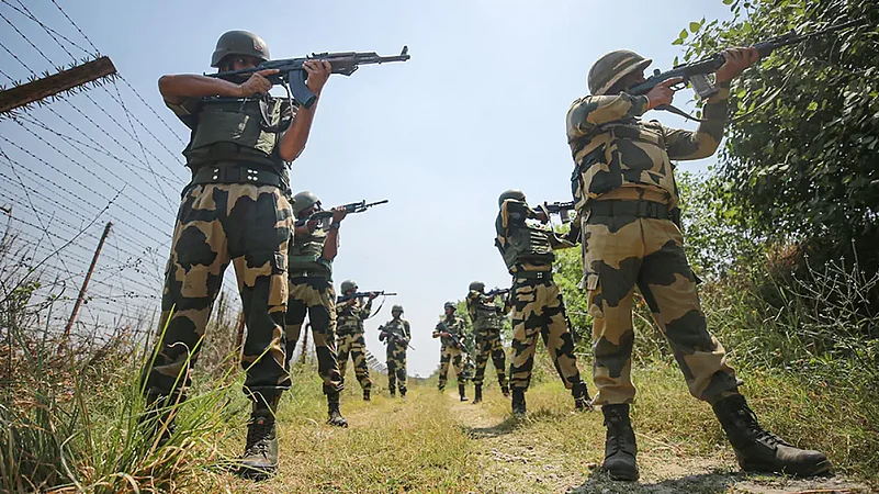 BSF troops resorted to firing briefly along the India-Pakistan border in the Jammu district on Tuesday after hearing a humming sound which led to suspicion that a drone was flying around. Alert troops fired two rounds on hearing that humming sound coming from a height of about 800 meters in the Akhnoor area, a BSF officer said. He said all concerned have been informed and further details are awaited.
