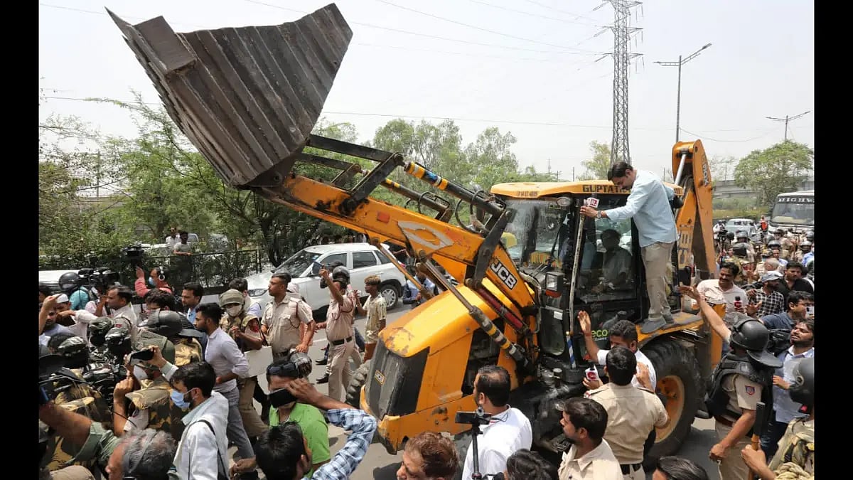 A Delhi civic body's bulldozer on Monday rolled on the roads of Shaheen Bagh, one of the major centres of protests against the Centre's Citizenship Amendment Act and proposed National Register of Citizens during 2019-20. However, not much demolition activity took place as locals themselves brought down some of the encroachment.