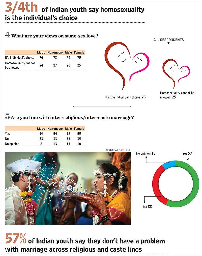 There are many more interesting nuggets that the survey has thrown up, some of which would surely make you sit up. For instance, a sizeable majority of youth in metro cities considers politicians to be more harmful for the country than terrorists, and that going abroad for a foreign degree is no more a fanatical obsession with youngsters.