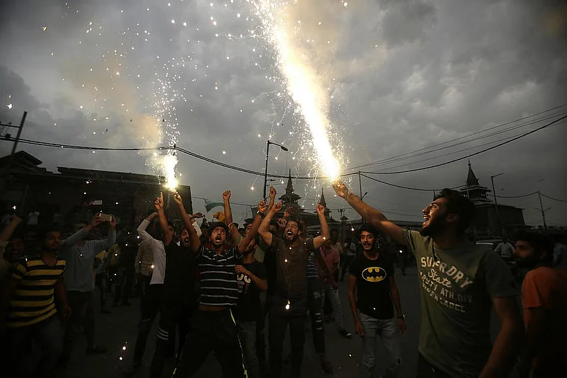 According to reports, people burst crackers, waved Pakistani flags and raised pro-Pakistan and anti-India slogans on Sunday night. The event later turned violent as some youths clashed with security personnel after throwing crackers into their camps.