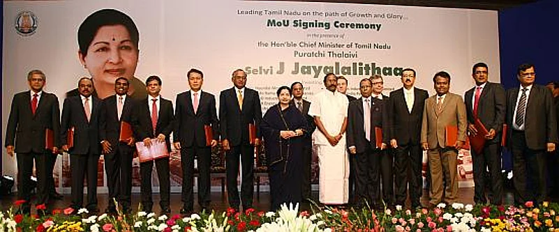 “I take pride in saying that these agreements will go down in the industrial history of Tamil Nadu for bringing in the highest quantum of investment on a single day,” Jayalalitha told the assembly. The MoUs with seven companies was given the go-ahead in the Cabinet meeting on May 14, while five more companies got the green signal on October 2.