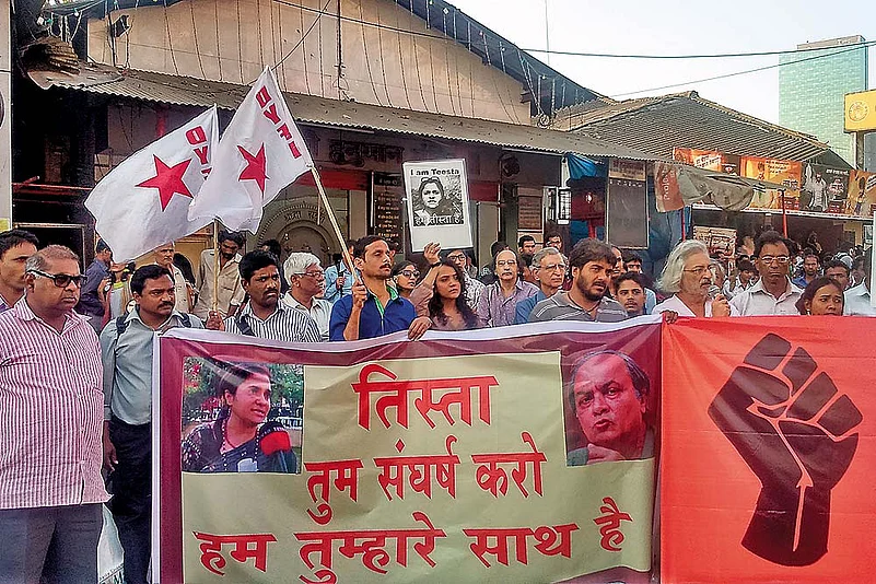 It is not going unnoticed that officials—ministers and police officers—accused in different cases, such as the Naroda Patia massacre, the Ishrat Jehan fake encounter case and the Sohrabuddin fake encounter case, have not only been getting bail, they are being reinstated in their original or even better ranks. “After Narendra Modi became prime minister, one by one, they are coming out,” says filmmaker and activist Anand Patwardhan. He says CJP has been a thorn in the flesh of perpetrators, referring to Teesta and Javed’s persistence in fighting the post-Godhra riot cases.