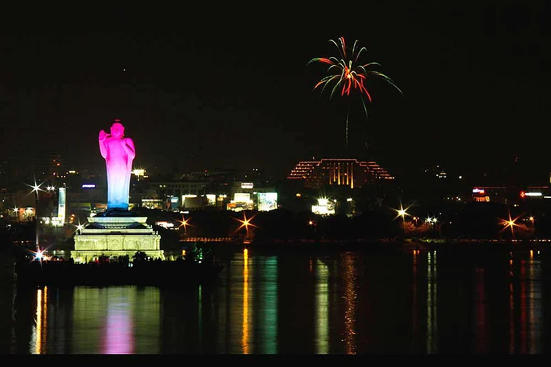 Burnt crackers and flowerpots lie strewn around the lanes of Siddiamber Bazar, a wholesale hub in the Old City. Paper and iron scrap merchants, jewellery showroom owners and foodgrain sellers here, who have lived in uncertainty since 2009, can finally celebrate. “Hum logaan saalon se dil pe patthar lekar baithe the, ab sukoon hai (hearts were heavy all these years, we can breathe easy now),” says metal scrap dealer Asad-ul-Qureshi. A vocal pro-Telangana man, Asad has been part of many bandhs and protests for the cause. Pointing to a sari showroom down the road, he says, chuckling, “Woh shop ek Andhrawale ki hai, usko bhi jalaane pade patakhe (that belongs to a businessman from Andhra, he too had to join the celebrations).” As the Lok Sabha passed the AP Reorganisation Bill on February 18 amid pandemonium, Hyderabadis held their collective breath. Their fate was unfolding on TV—and off it. Those from Telangana shed tears of joy; Rayalaseema and coastal Andhra watched with resigned acceptance. A new chapter in history had begun.