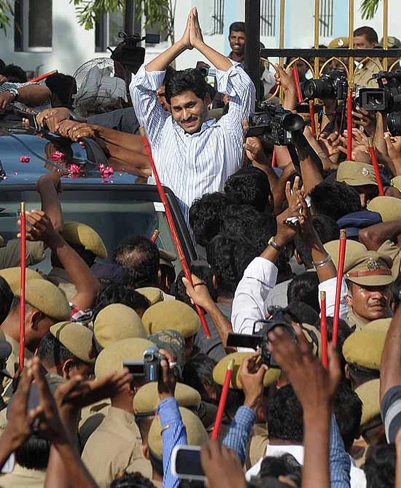 After 484 days in jail, YSR Congress leader Jaganmohan Reddy walked out of jail, adding one more twist to politics in Andhra Pradesh. The top contender for the CM’s post in the 2014 polls, he cooled his heels in Chanchalguda jail for 16 months in an illegal assets case, but is now back in business. As soon as Jagan came out of jail, Congress spokesperson P.C. Chacko hinted unsubtly at a post-poll alliance, “Whether one is in jail or outside, whether one is hostile or friendly, one will have to support the Congress rather than the BJP after elections.”
