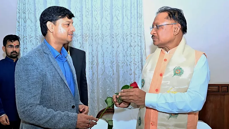 Raipur, January 04, 2024 - Following his assumption of office, the new Commissioner of the Public Relations Department, Shri Mayank Srivastava, paid a courtesy visit to Chief Minister Shri Vishnu Deo Sai at the State Guest House Pahuna on Thursday evening. Chief Minister extended his best wishes for Shri Srivastava's new responsibilities.
