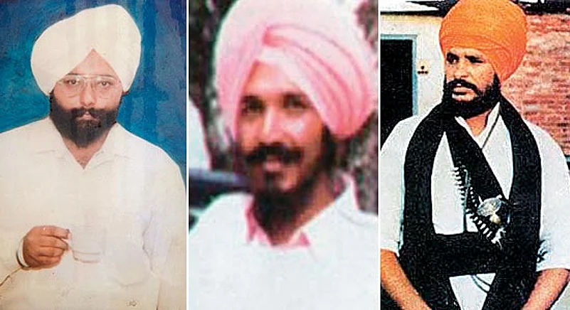 (Left to Right) Balwant Singh Multani Died during third-degree torture; Gurmukh Singh Nagoke The KCF militant bumped off with his wife; Sukhdev Singh Babbar Killed and his Maruti 1000 taken away by cops.