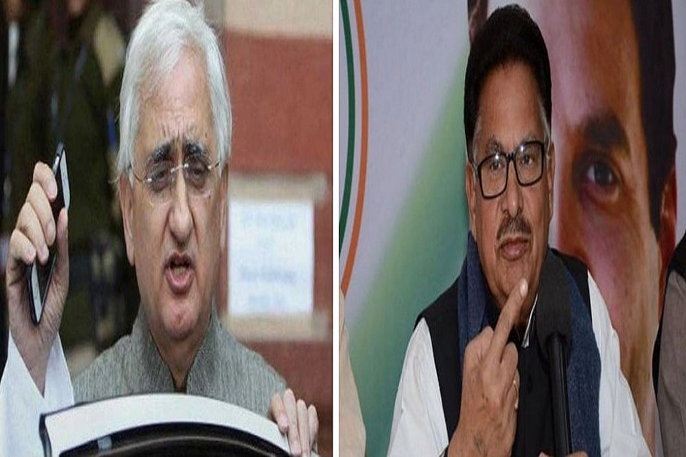 Speaking at an event at Aligarh Muslim University (AMU) on Sunday, Khurshid said there were Muslims' blood stains on the Congress hands.