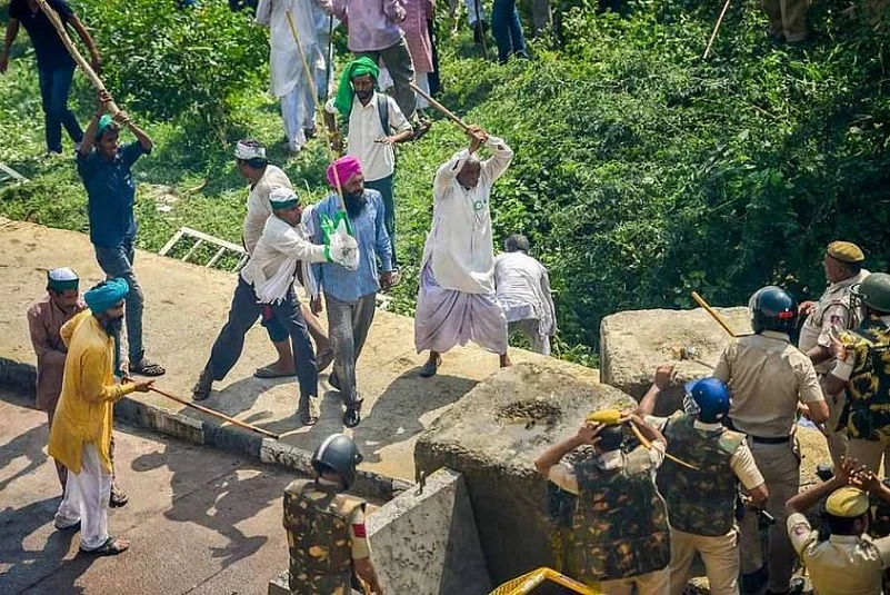 The farmers, riding tractors and trolleys, broke barricades of the Uttar Pradesh (UP) Police and then started proceeding towards the barricades put up by the Delhi Police, a senior police officer said.