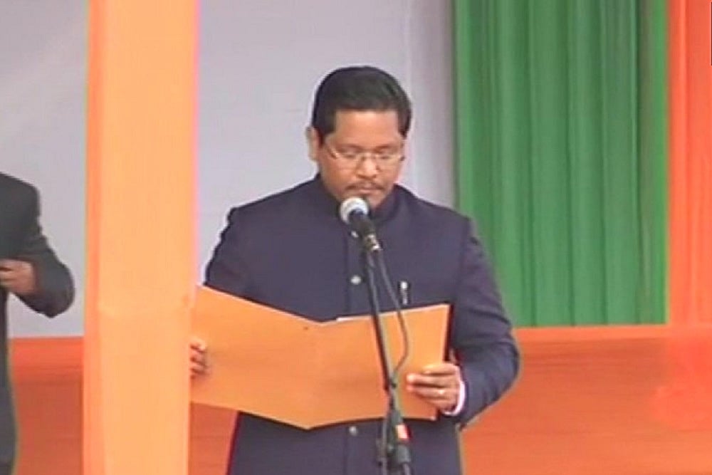 The National People's Party( NPP) president Conrad Sangma was sworn in as Meghalaya Chief Minister by Governor Ganga Prasad on Tuesday.
