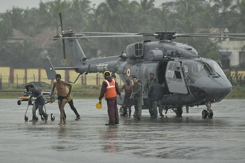 An Air Force chopper rescued four fishermen about 30 miles west of Kayamkulam and brought them to a medical college hospital here.