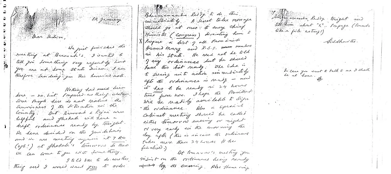 Nothing has been done—no list prepared...nothing whatsoever. Some people here do not realise the seriousness of the situation in the country. But Barooah and Rajni were helpful and Ghokale [sic] will have a draft ordinance ready by tonight. We have decided on the guidelines and we are meeting again at 9 am (ugh!) at Ghokhale’s tomorrow. So that we can come to you with something.