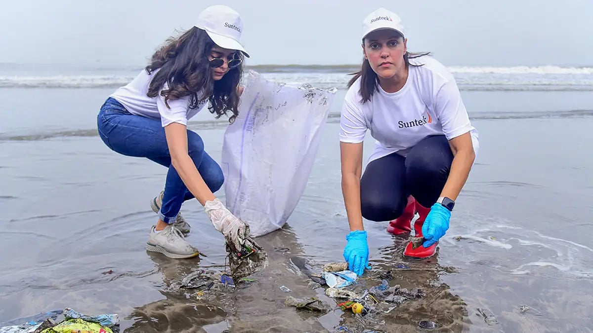 Neha Dhupia and Mithila Palkar at cleanliness camp