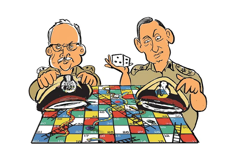 New state DGP Satish Mathur and batchmate Rakesh Maria, who was made DG (Homeguards) overnight during the Sheena Bora murder probe, are playing a snakes-and-ladders game. Maria had superseded Mathur (and Ahmad Javed) to become Mumbai’s top cop, and now Mathur’s previous—and coveted—post of DGP (Anti-Corruption Bureau) is up for grabs. That’s what Maria is reportedly eyeing, but his perceived closeness to the erstwhile Congress government could stand in the way. And Ahmad Javed, who replaced Maria, has gone away to Saudi Arabia.