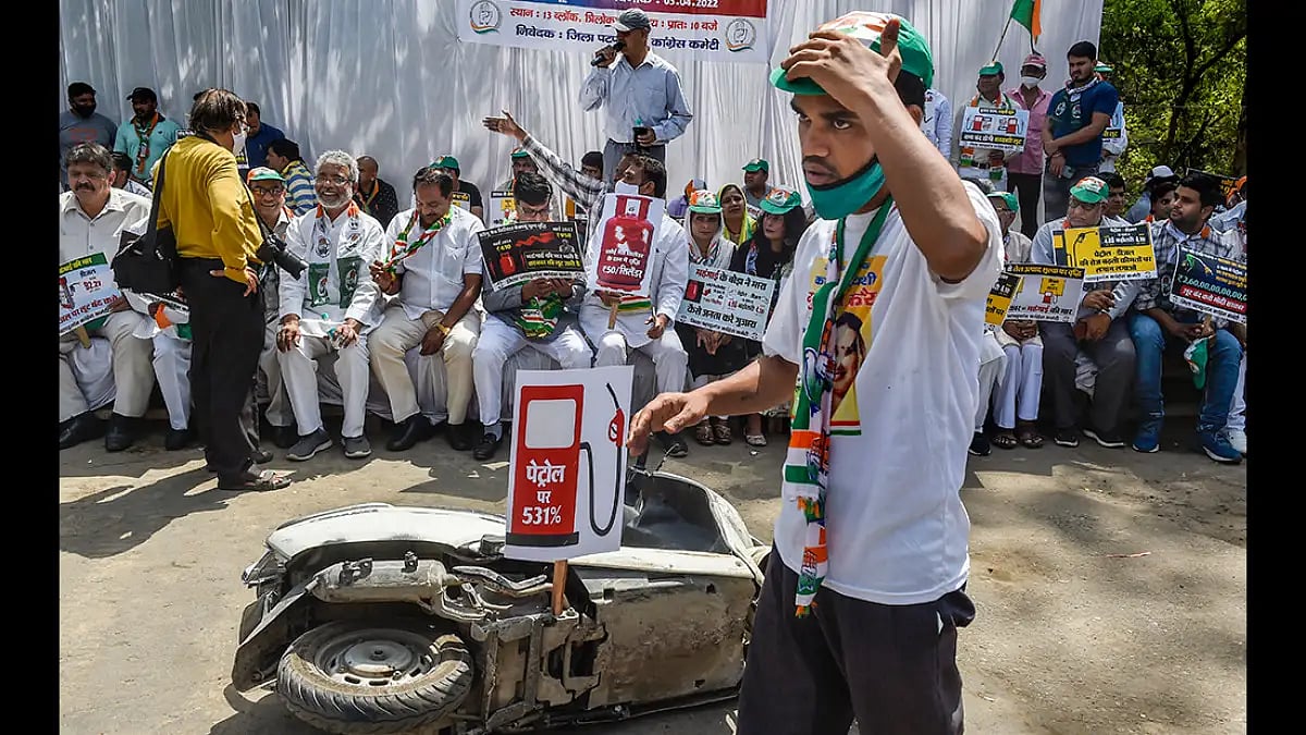 The Delhi unit of the Congress on Thursday staged a protest at central Delhi's Jantar Mantar against the Bharatiya Janata Party-led central government for the constant rise in petrol, diesel and CNG prices.