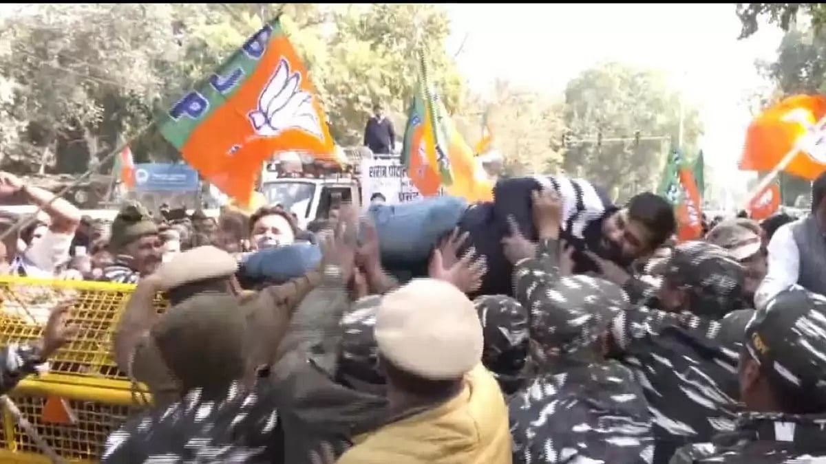 Delhi BJP leaders and workers on Saturday staged a protest at the AAP office here demanding the resignation of Chief Minister Arvind Kejriwal after the ED named him in a charge sheet in the excise scam case.