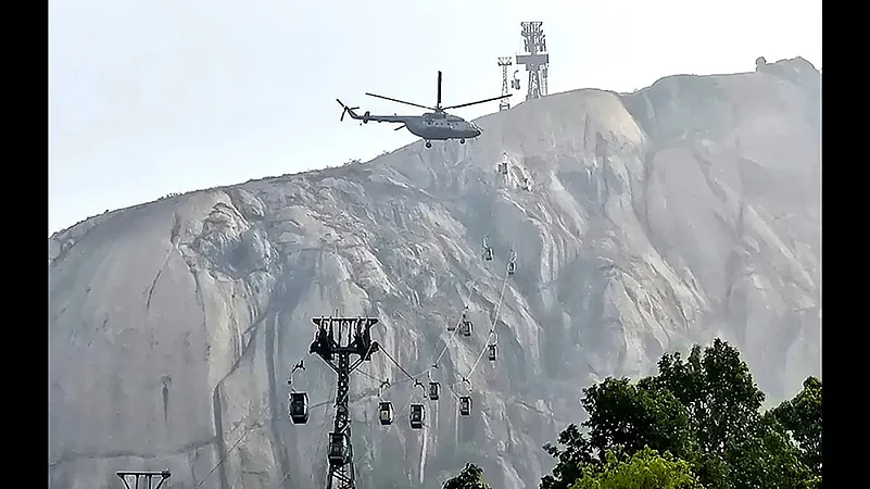 Indo-Tibetan Border Police (ITBP) and National Disaster Response Force (NDRF) personnel were involved in the rescue operation after the collision of two cable cars at Trikut Ropeway, in Deoghar.
