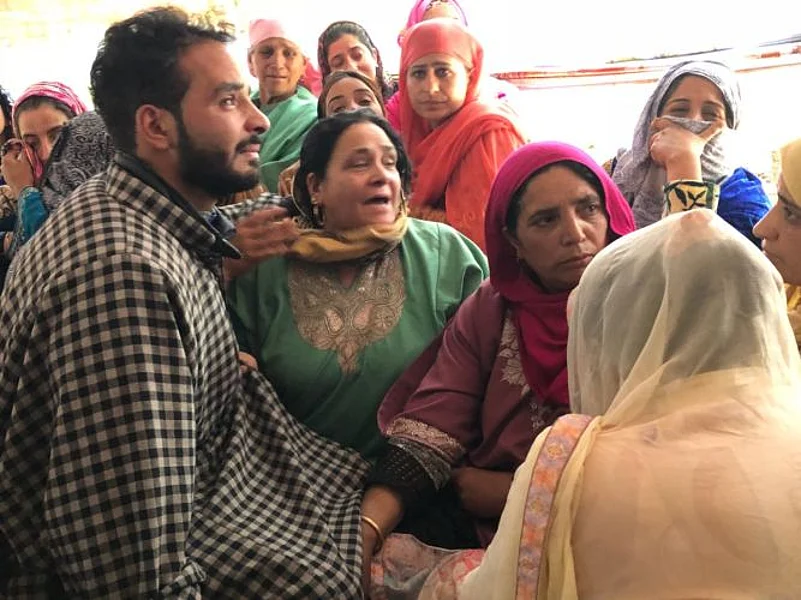 As the last attempt, 67-year-old Ghulam Nabi Mir covered his face with his hands to save himself from bullets fired by suspected militants. But bullets hit his hands, his face too and other parts of his body. “My father in his defence from attackers might have put his hands before his face. Even his hands had bullet marks,” says his son Sartaj Ahmad Mir, 22, sobbing.