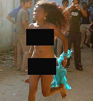 - November 2007: An Adivasi woman demanding Scheduled Tribe status as part of a rally stripped by three rioters in Guwahati as youths clicked away on their cellphone cameras