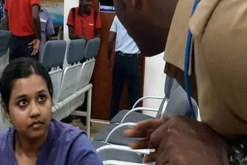 The woman is said to be a student at an Australian university and she is on a visit to her native district in Tuticorin.