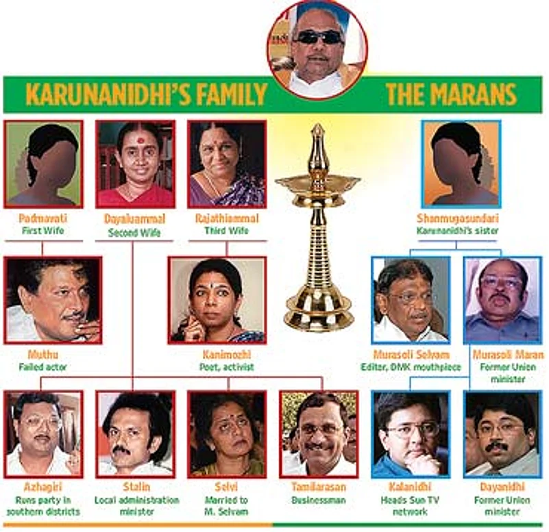 The DMK patriarch may appear to have quickly wielded the whip and chastised Dayanidhi. However, with the imminent entry of his daughter Kanimozhi into the political mainstream, and his two sons Stalin and Azhagiri already well- entrenched, Karunanidhi is only confirming that it is the First Family that matters the most. Despite the lip-service paid to inner-party democracy, there has been little doubt that 55-year-old Stalin is Karunanidhi's political heir.