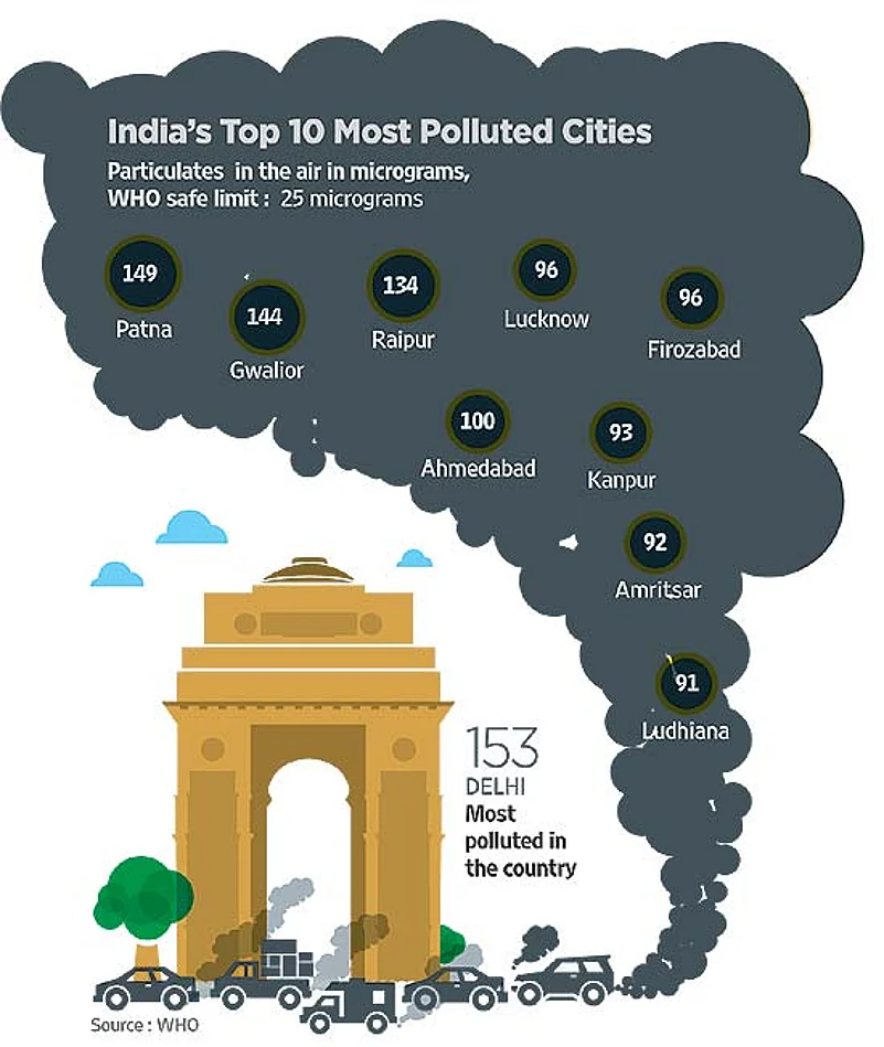 - 13 of the world’s top 20 dirtiest cities are in India, according to the World Health Organisation’s statistics